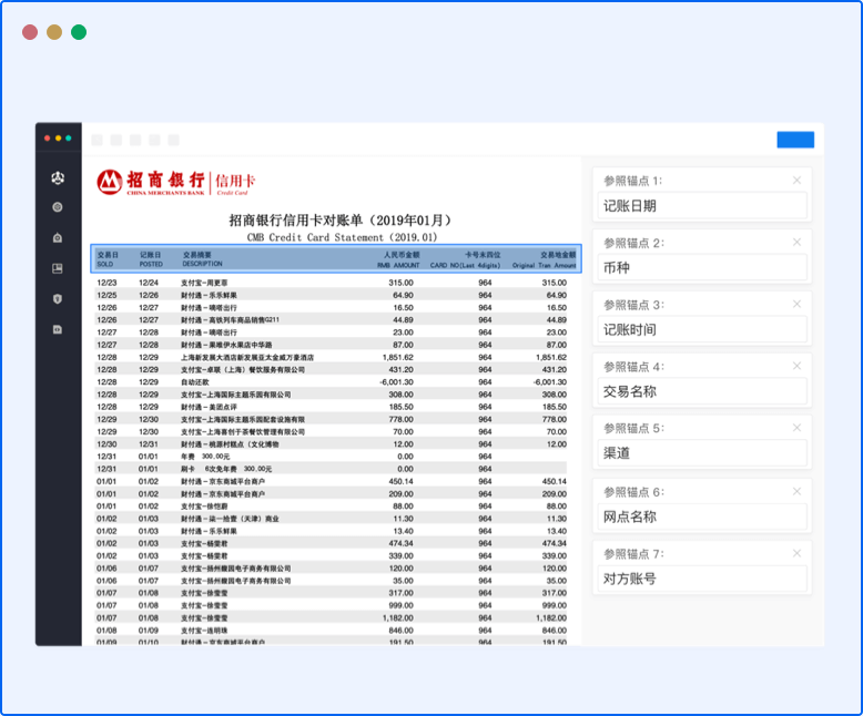 支持国内国际几千家银行、微信、支付宝等平台流水识别,顺利获得 OCR 识别将流水文件转换为可编辑、可统计数据